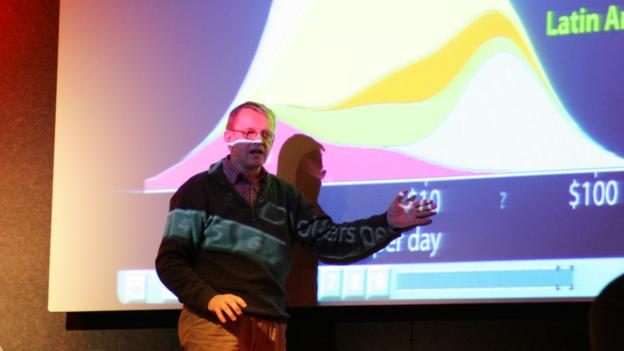 Rosling’s presentations are grounded in solid statistics (often drawn from United Nations data), illustrated by the visualization software he developed. The animations transform development statistics into moving bubbles and flowing curves that make global trends clear, intuitive and even playful. During his legendary presentations, Rosling takes this one step farther, narrating the animations with a sportscaster’s flair.